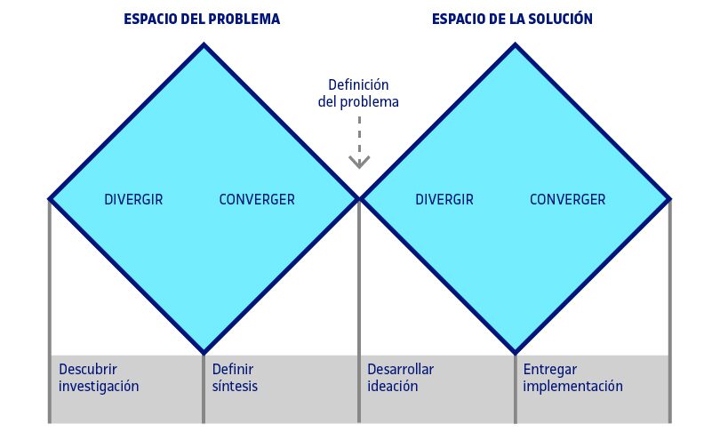 Este tipo de actividades y decisiones se engloban en lo que se denomina espacio del problema, que es complementario al espacio de la solución. El espacio del problema incluye una etapa de descubrimiento, de análisis, donde se recoge todo el conocimiento necesario sobre el comportamiento del usuario, requisitos de negocio, limitaciones tecnológicas, contexto, etc., y una etapa de definición del problema, de síntesis, en la que se da sentido a toda la información generada en la etapa anterior, se hacen elecciones y renuncias, y se formula el problema de forma suficiente para generar soluciones.