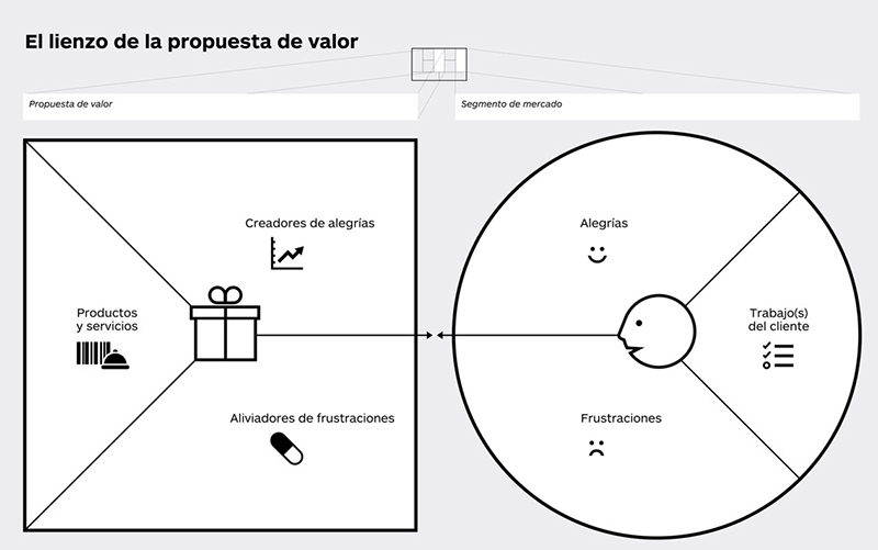 El lienzo de propuesta de valor (Value Proposition Canvas) es una herramienta que ayuda a visualizar, diseñar y testar como una organización crea valor para sus clientes